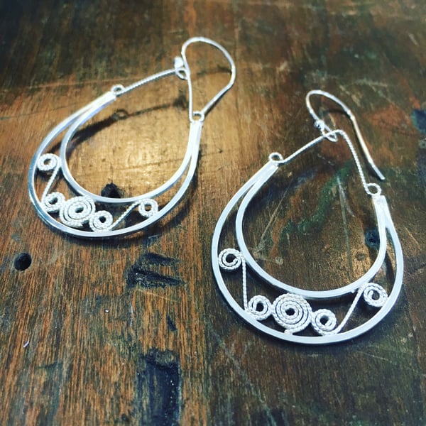 Sterling Silver Filigree Hoop Earrings
