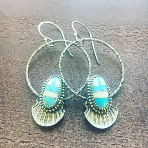 Inlay Turquoise Stone N Hoop Earrings
