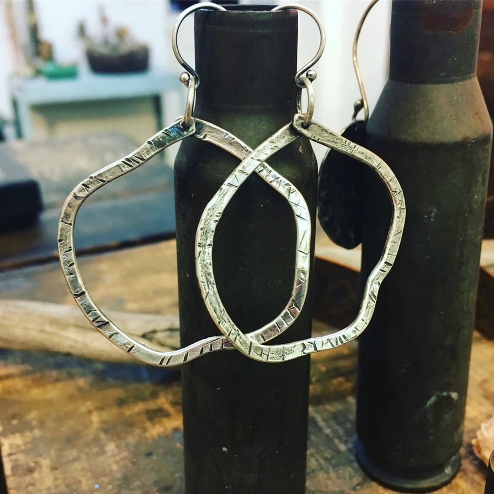 These hoops will quickly become your go to earring for any occasion. Hand fabricated of sterling silver, each pair is a one of a kind.